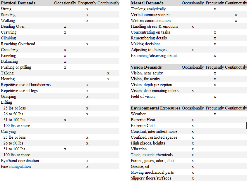This job description in no way states or implies that these are the only duties to be performed by the employee(s) incumbent in this position. Employee(s) will be required to follow any other job related instructions and to perform any other job-related duties requested by any person authorized to give instructions or assignments. This document does not create an employment contract, implied or otherwise, other than an "at will" relationship.